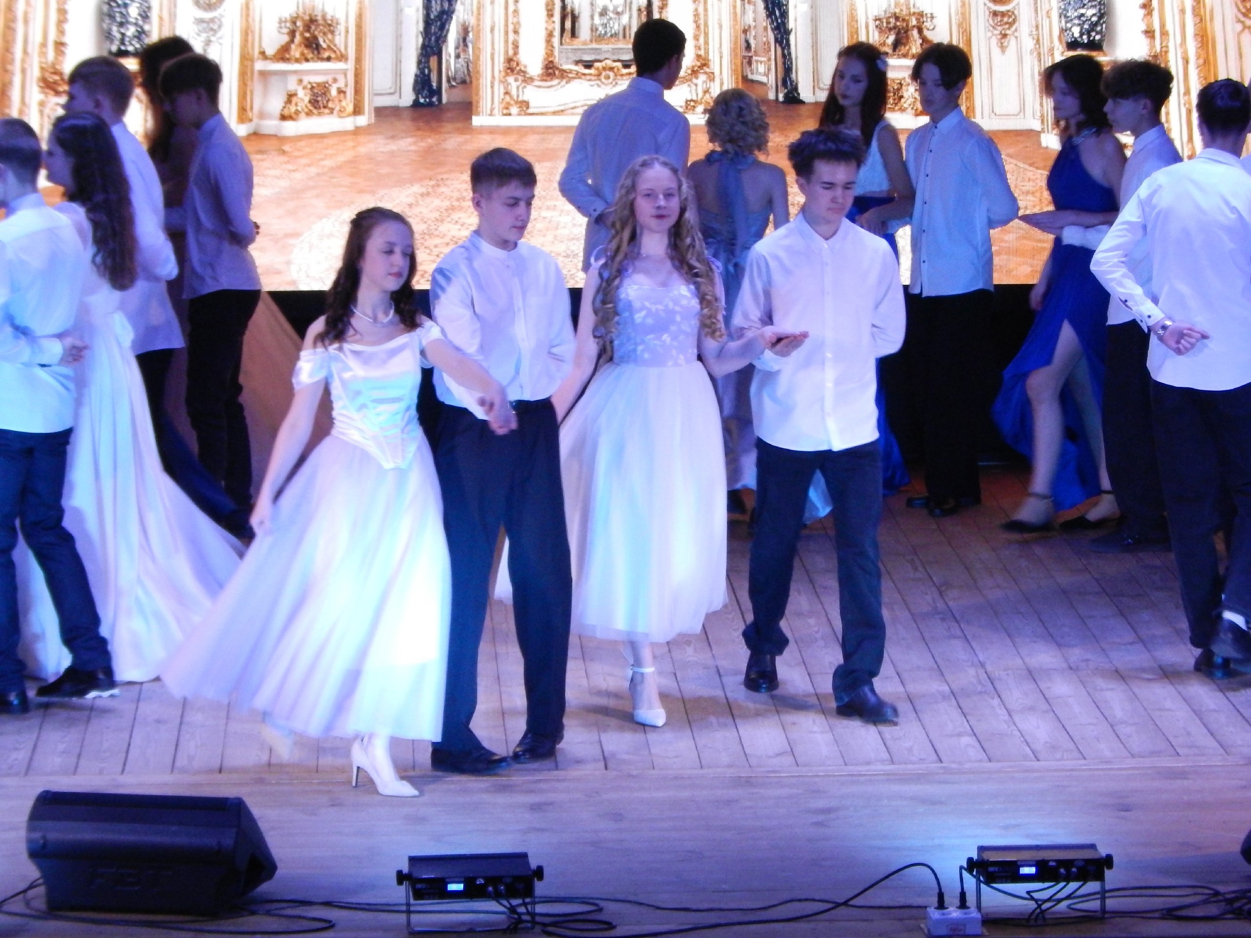 Затем зазвучали ритмы кадрили — весёлого танца, который объединил участников в едином порыве радости и веселья. Но, конечно, кульминацией танцевальной программы стал вальс. Его нежные и плавные движения, сопровождаемые красивой музыкой, заворожили зрителей и участников, став символом гармонии и благородства.