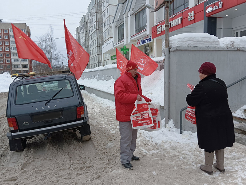 В разных районах областного центра коммунисты раздавали поздравительные открытки и пакеты с агитационными материалами кандидата в Президенты России от КПРФ Николая Харитонова, а также специальный выпуск газеты «Правда», представляющий разные аспекты Программы партии, с которой кандидат идёт на выборы. Все направления качественных преобразований, которые предлагает избирателям КПРФ, раскрывают члены команды – готовый кабинет министров правительства народного согласия. В пакете также можно найти и газету областного отделения КПРФ «Слово Правды».