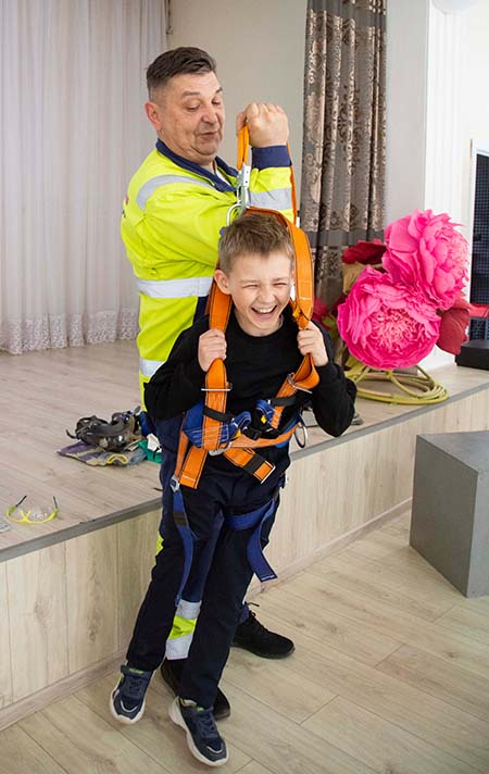 Специалисты по пожарной и промышленной безопасности завода ЭГГЕР Сергей Ширяев и Александр Борисов показывали ребятам средства индивидуальной защиты и объясняли, для чего нужен каждый элемент. Например, они облачали школьников в спецодежду и помогали почувствовать себя промышленным альпинистом, которому нужно работать на высоте в несколько сотен метров в непогоду, или работником, которому необходимо спуститься в глубокую загазованную шахту и устранить там какую-нибудь неисправность.