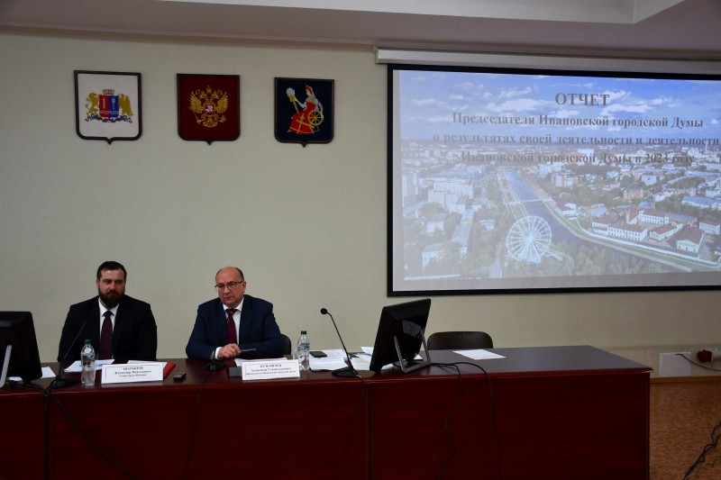 17 апреля в Администрации города прошло пленарное заседание Ивановской городской Думы, на котором с отчетом о проделанной в 2023 году работе выступили Глава города Иванова Владимир Шарыпов и Председатель Ивановской городской Думы Александр Кузьмичев.