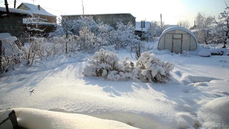 Если у вас настоящая русская зима – со снегом по колено и выше, не забывайте про то, что убирать его нужно не только из-под ног. Большие массы снега могут привести к повреждению кровли различных дачных строений, особенно теплиц. Чтобы избежать этого, регулярно очищайте от снега все крыши. Не забывайте также стряхивать снег с деревьев. Однако делать это нужно крайне аккуратно, чтобы не повредить ветви, которые от сильных морозов становятся хрупкими.