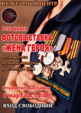 6 марта, в 14:00 в фойе Культурного центра состоится торжественное открытие выставки патриотического фотопроекта «Жена Героя».