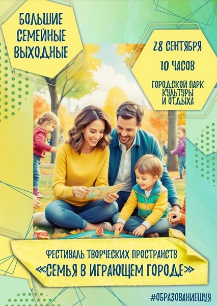 Приглашаем всех в эту субботу, 28 сентября, в Городской парк культуры и отдыха на закрытие Марафона семейного досуга "Большие семейные выходные".