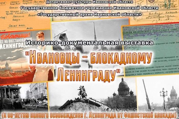 В пятницу 26 января в Государственном архиве Ивановской области (г. Иваново, ул. Куконковых,1) открылась историко-документальная выставка - «Ивановцы — блокадному Ленинграду», посвященная 80-летию полного освобождения Ленинграда от фашистской блокады.